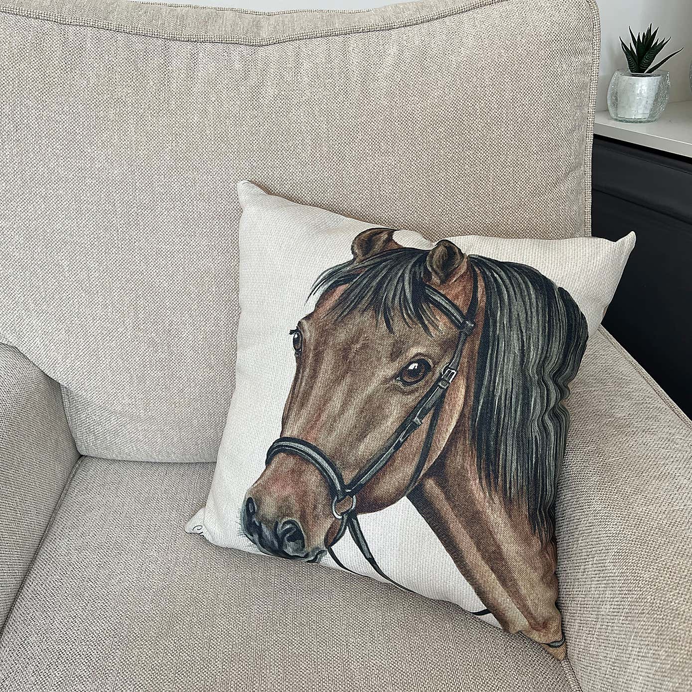 Christine Varley Pale Brown Bay Horse Square Cushion