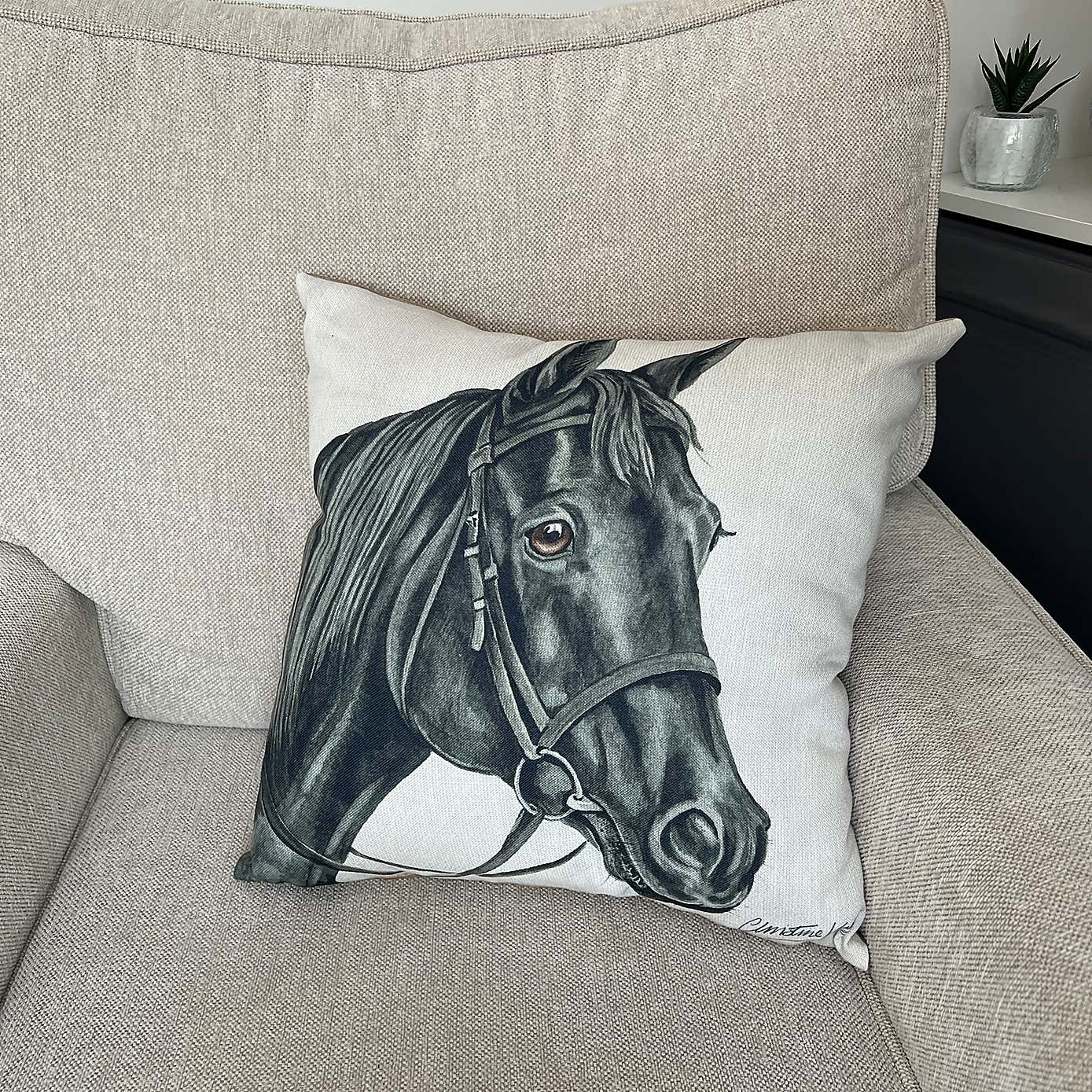 Christine Varley Black Horse Square Cushion