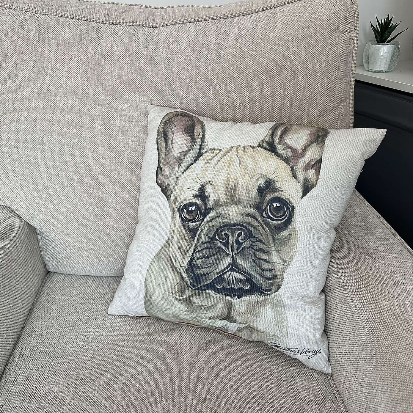Christine Varley French Bulldog Fawn Square Cushion