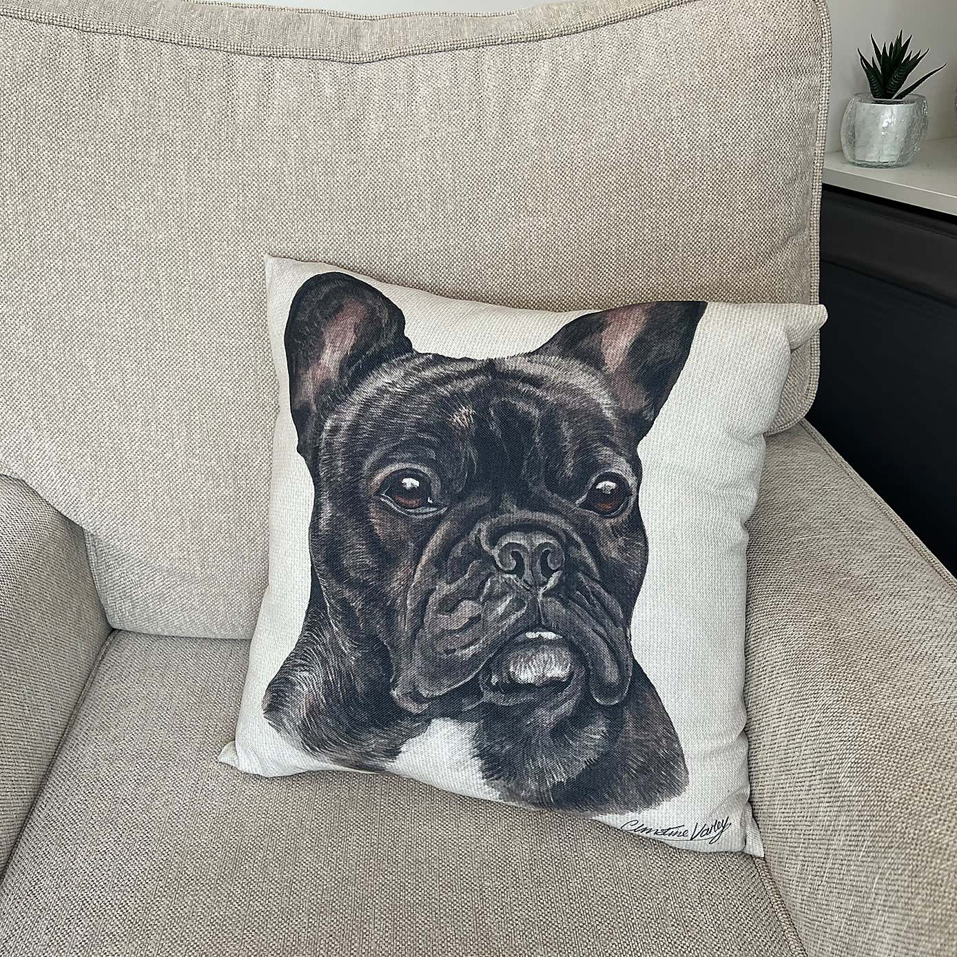 Christine Varley French Bulldog Black Square Cushion