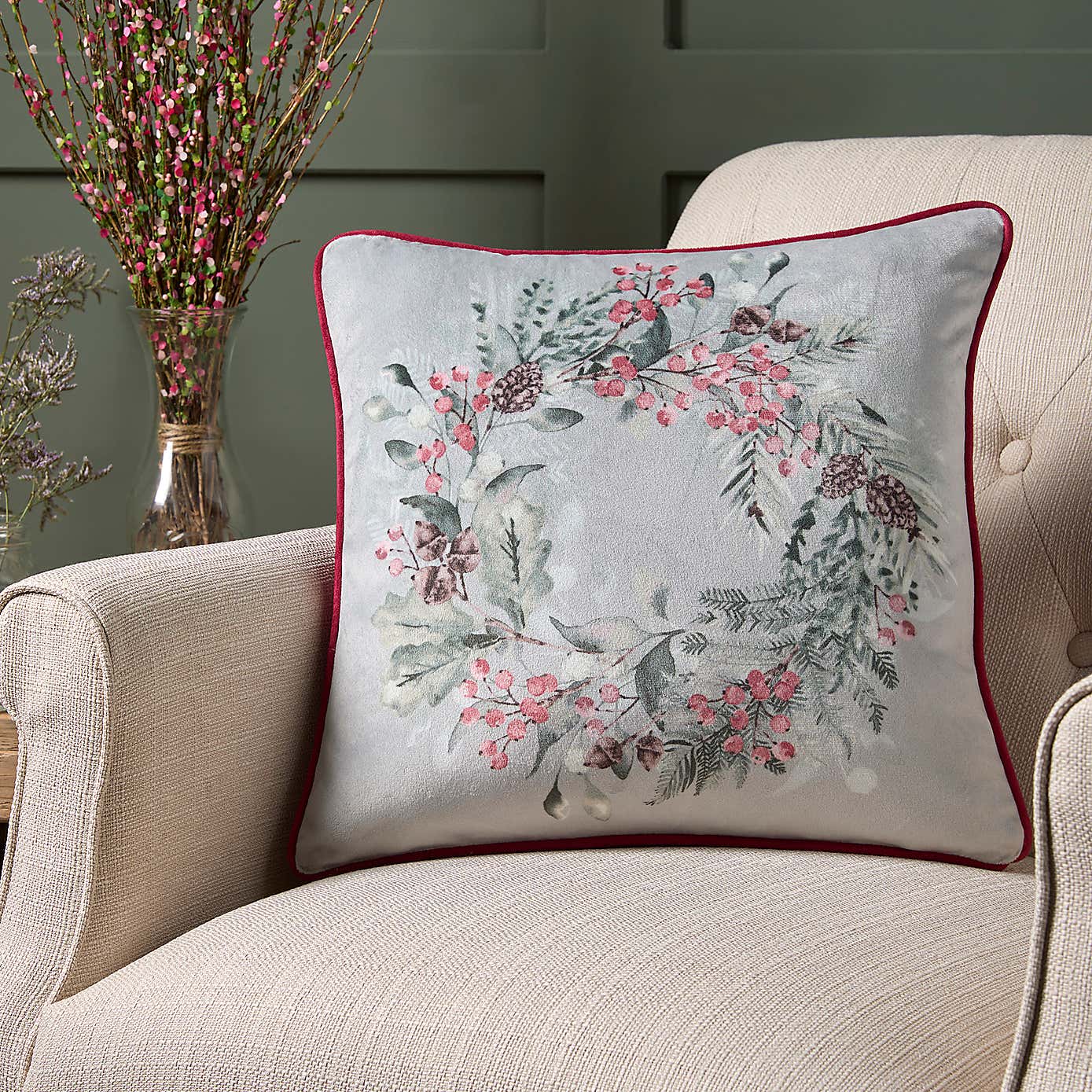 Winter Sprigs Square Cushion