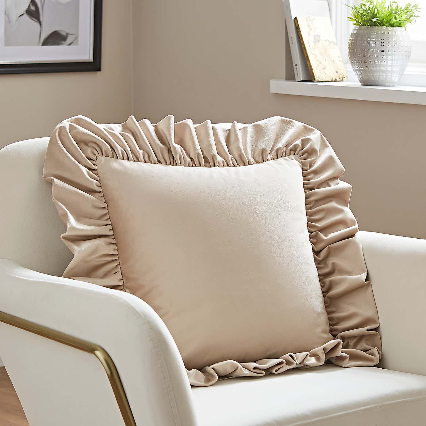 Recycled Velour Oversized Frill Square Cushion