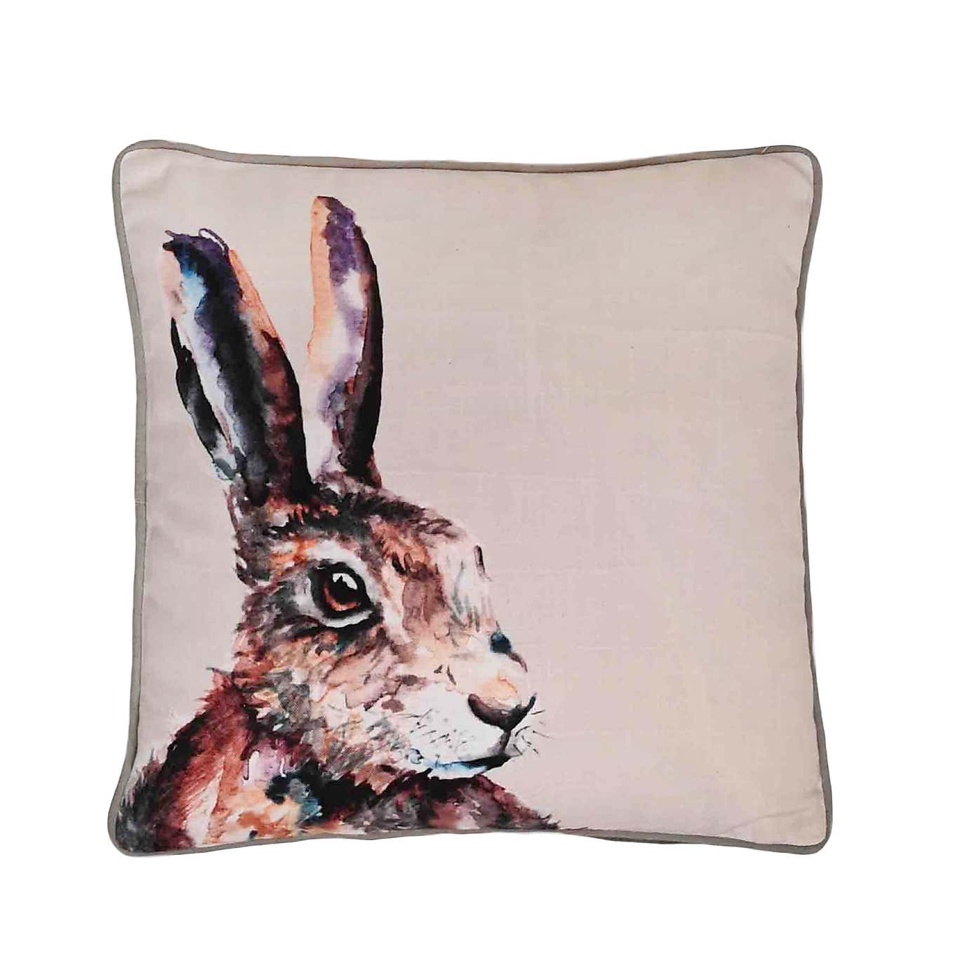Meg Hawkins Hare Square Cushion with Wooden Buttons
