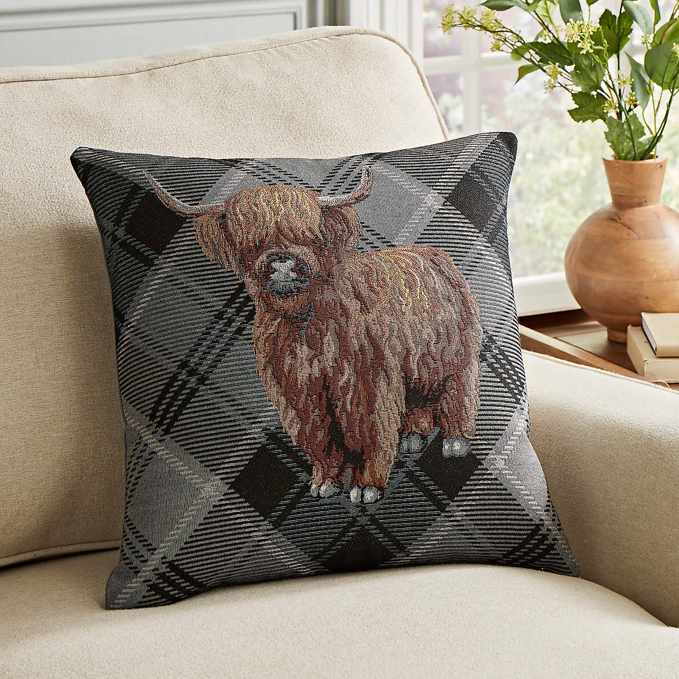 Highland Cow Tapestry Square Cushion