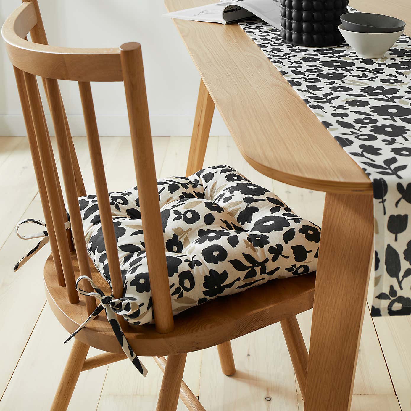 Floral Monochrome Cotton Seat Pad