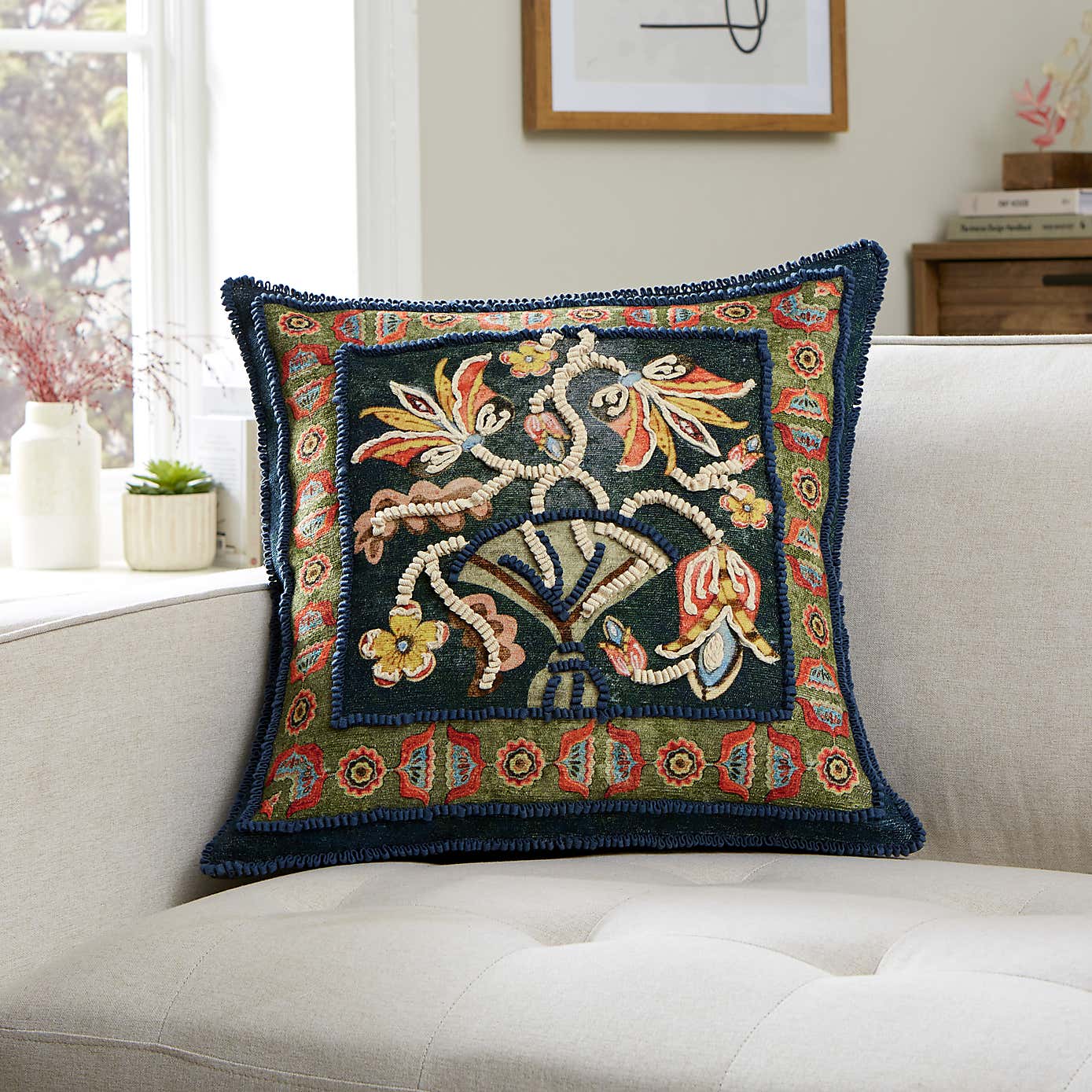 Embroidered Floral Meadow Cushion 43x43 Multi