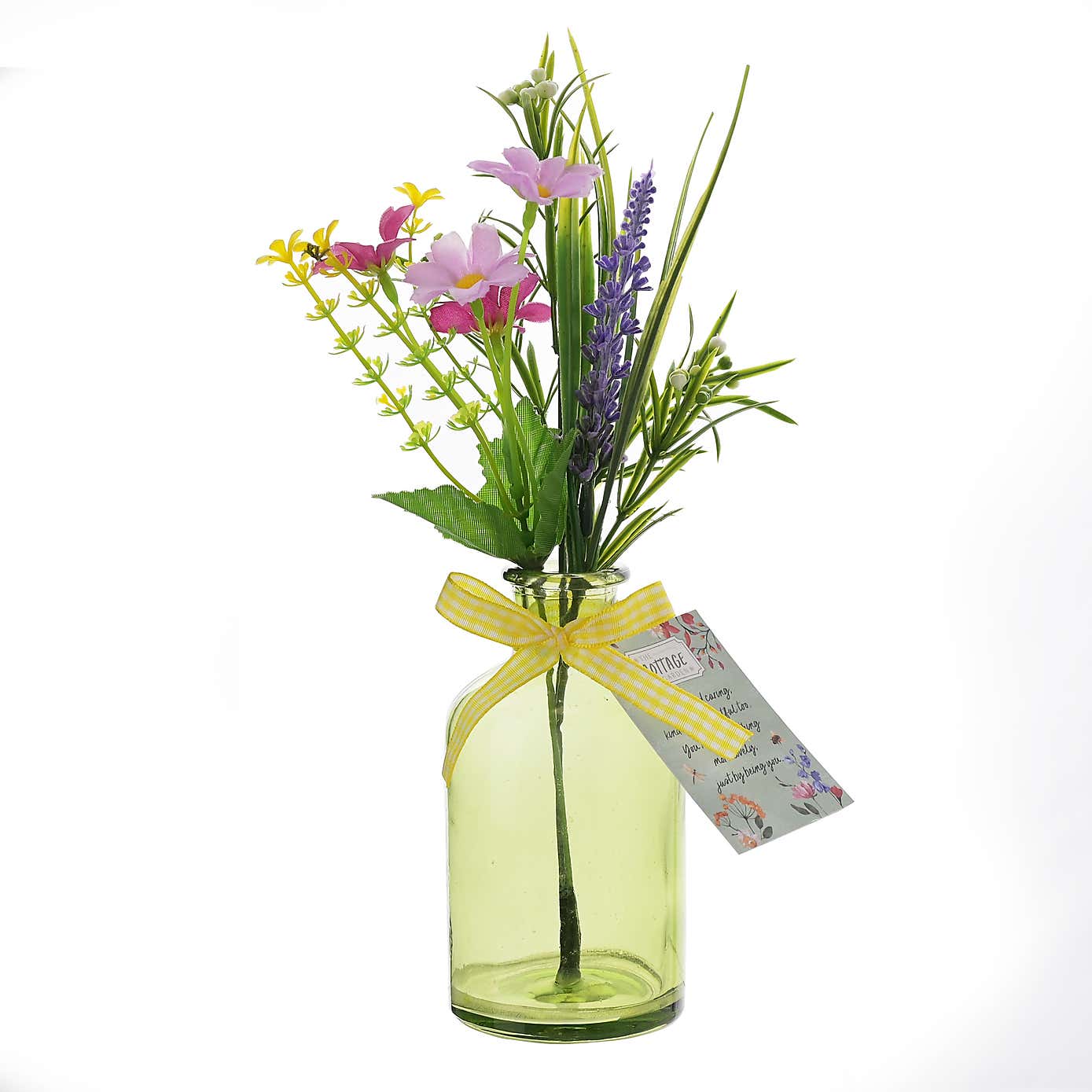 The Cottage Garden Artificial Bouquet in Green Glass Vase