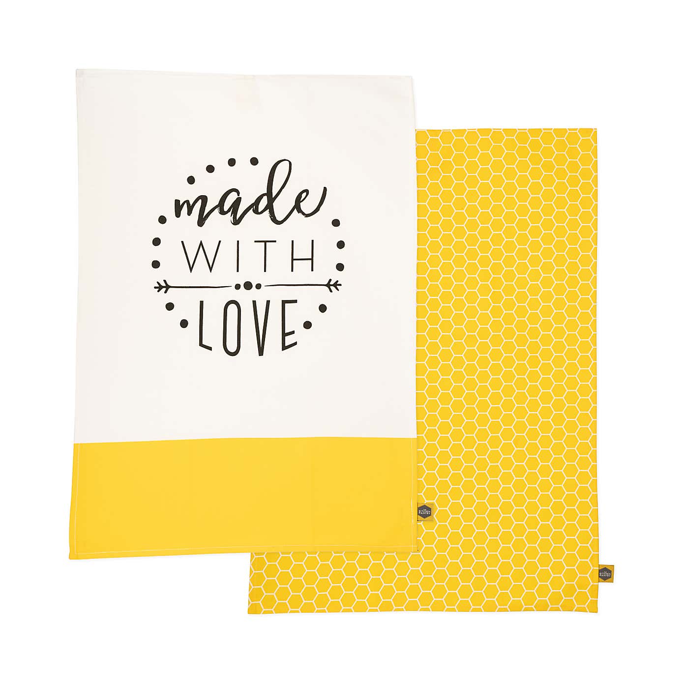 Set of 2 Kitchen Pantry Made With Love Teal Towels