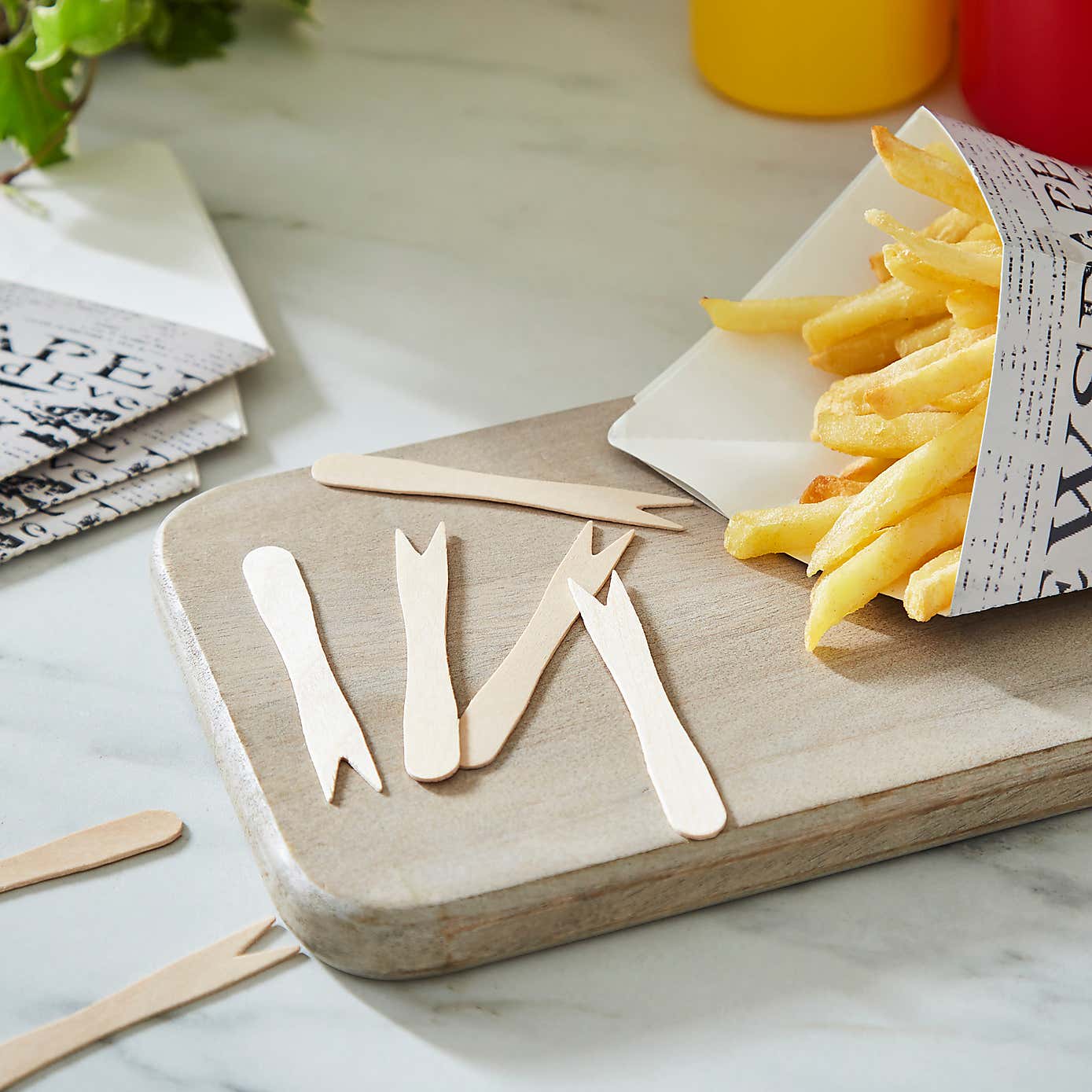 Set of 10 Wooden Chip Forks