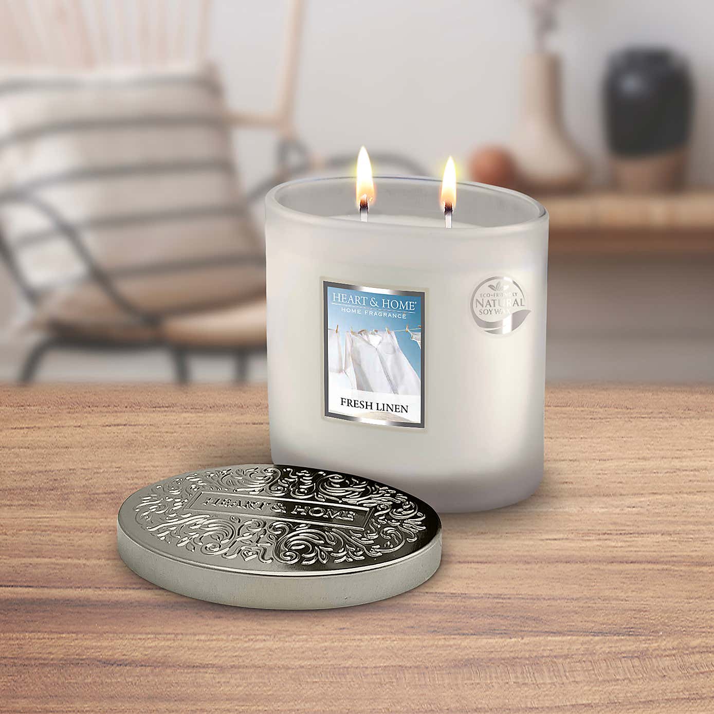 Heart and Home Ellipse Fresh Linen Multi Wick Candle