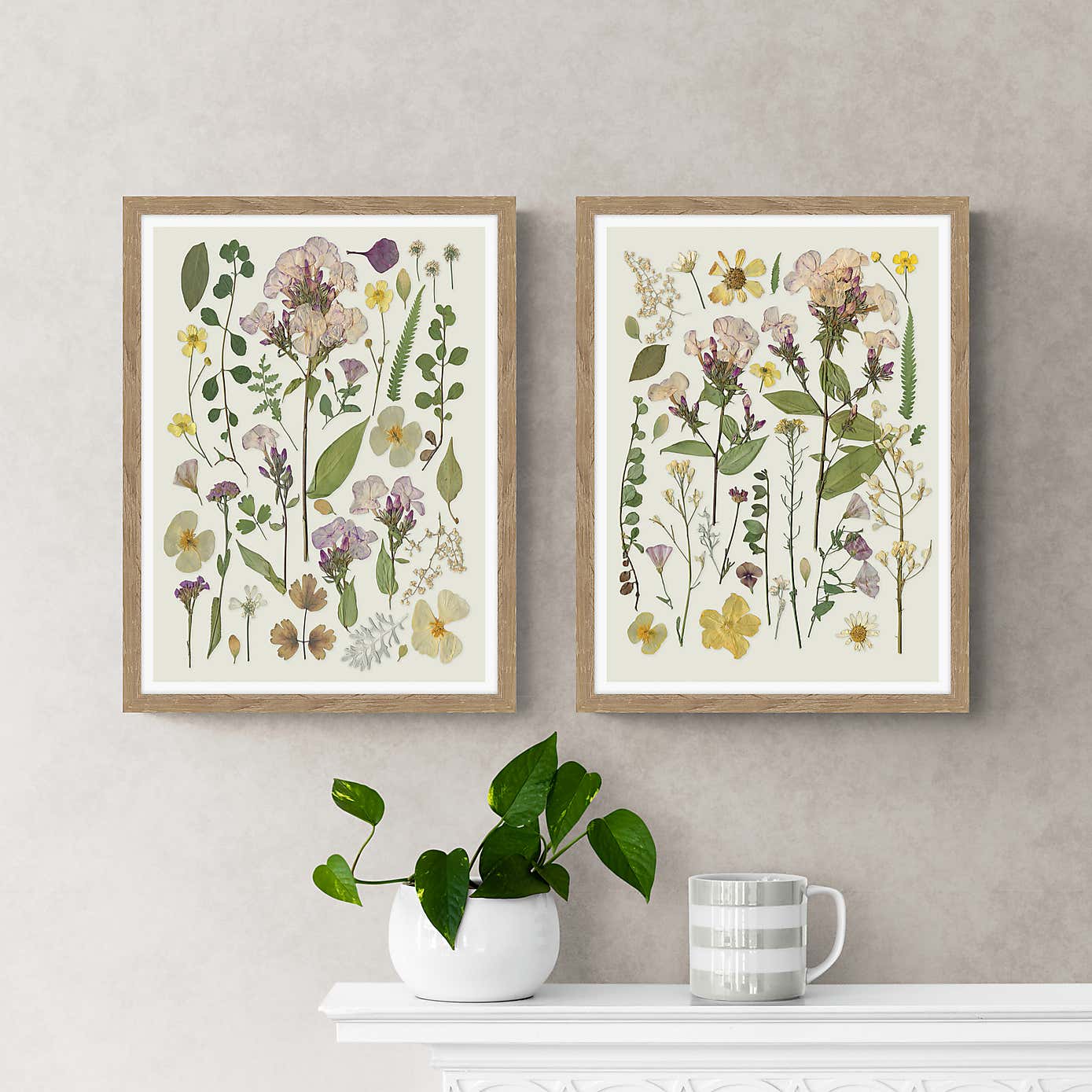 Set of 2 Modern Floral Framed Prints 40x40cm