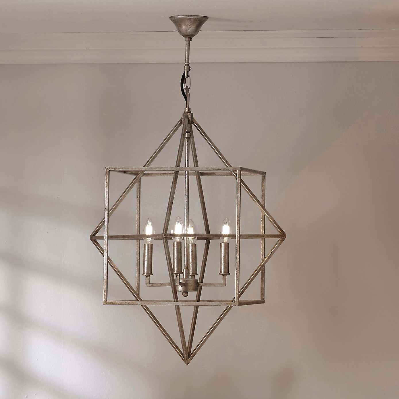Sirius Antique Silver Metal 4 Light Cube Pendant Light