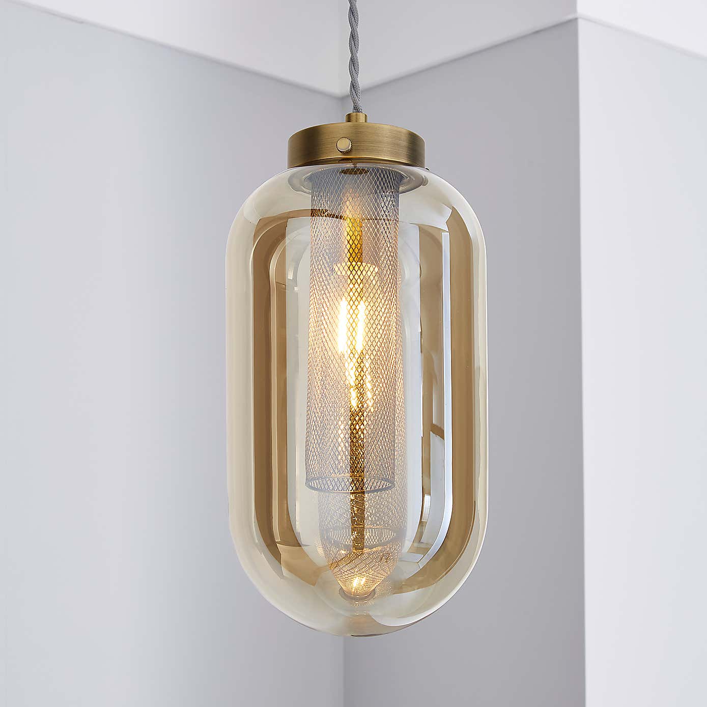 Safi Mesh 1 Light Pendant Ceiling Fitting Antique Brass