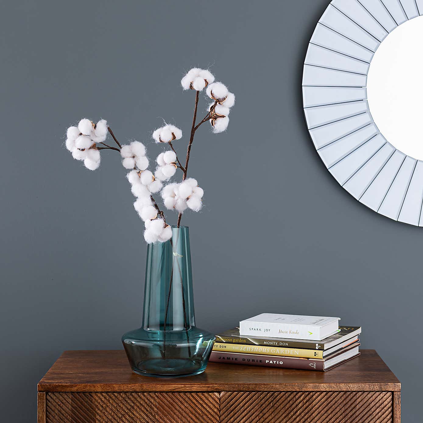 Set of 2 Artificial Cotton Ball Stems