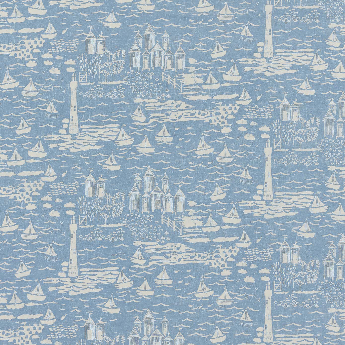 By the Metre Seaside Town PVC Ashley Blue