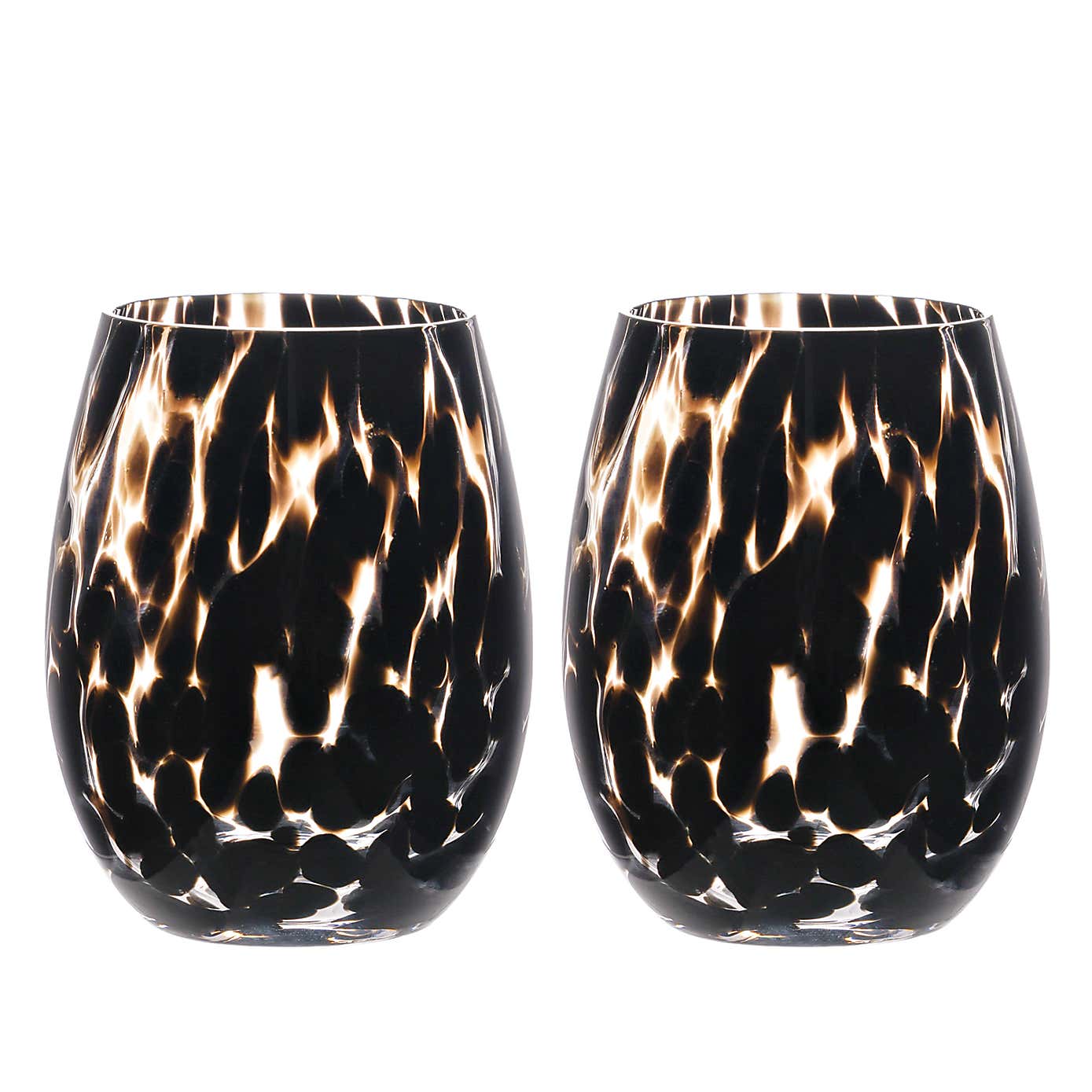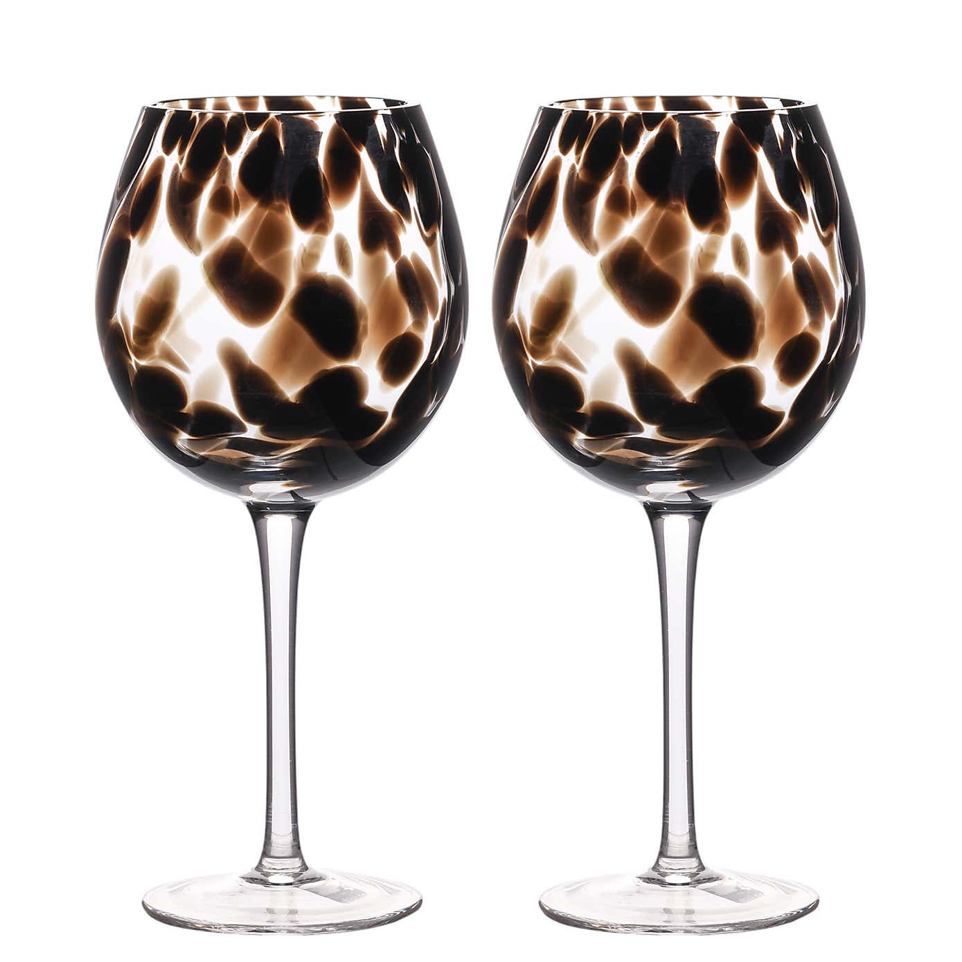 Hestia Set of 2 Brown Rounded Tortoise Shell Wine Glasses
