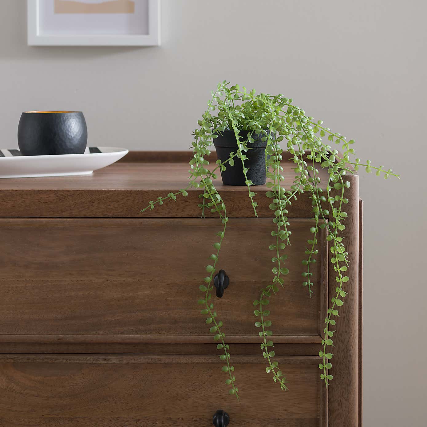Artificial Trailing Plant in Round Metal Vase