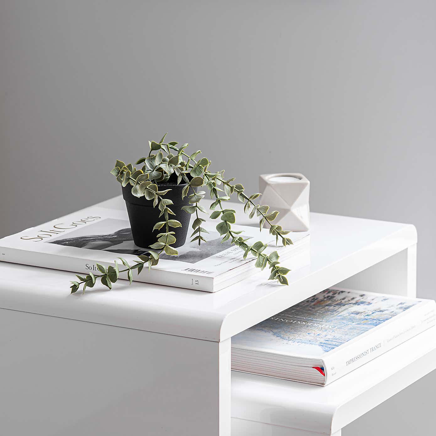 Artificial Trailing Eucalyptus in Black Plant Pot