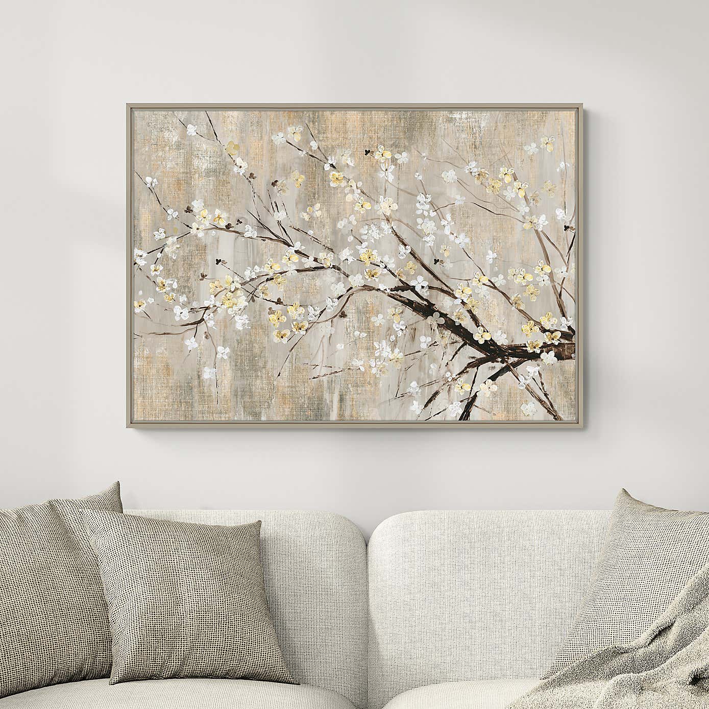 Silver Apple Blooms Framed Canvas