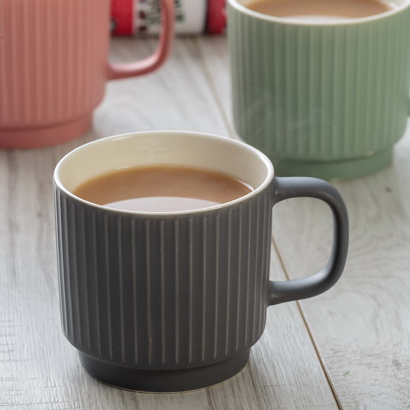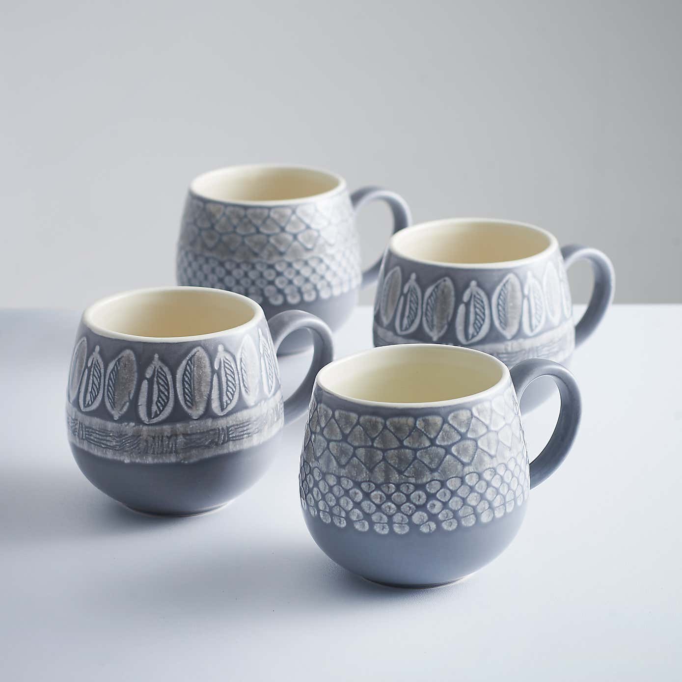 Mason Cash Set of 4 Grey Embossed Ribbed Mugs