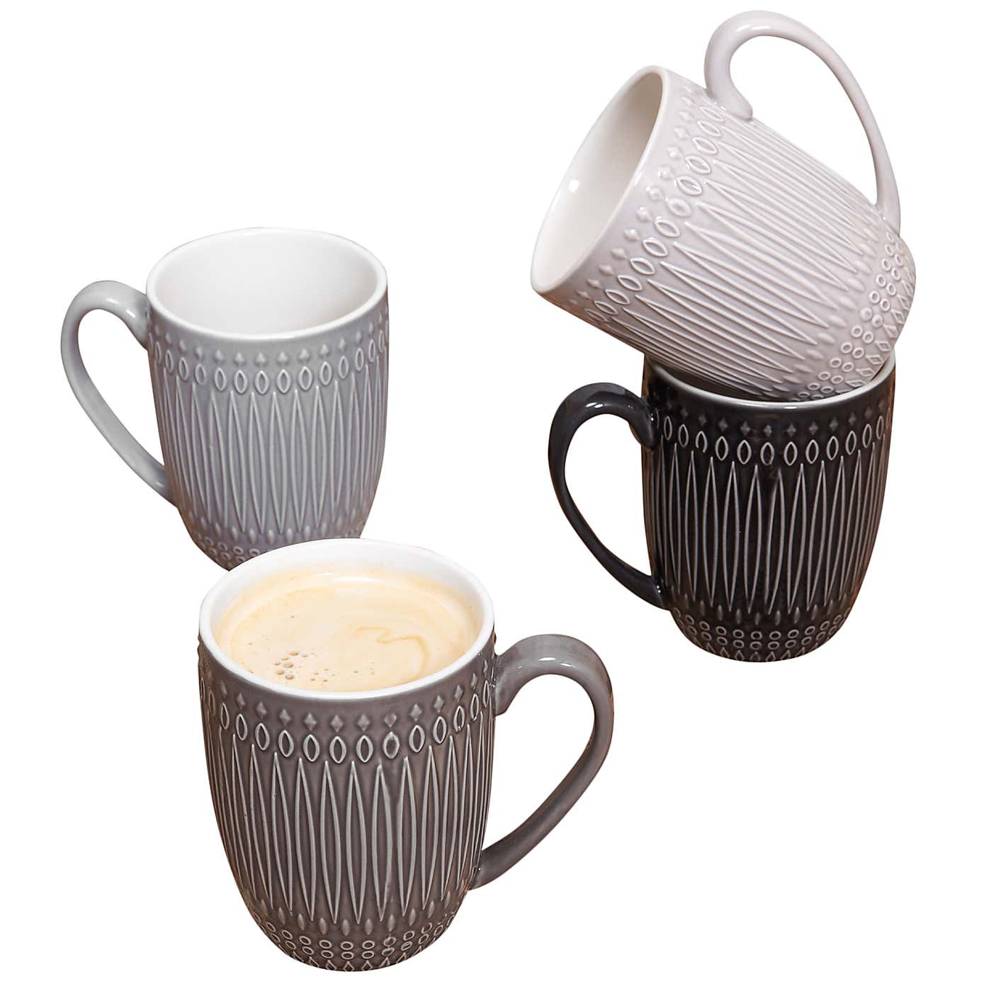 Kitchencraft Set of 4 Floral Polka Dot Grey Stoneware Mugs