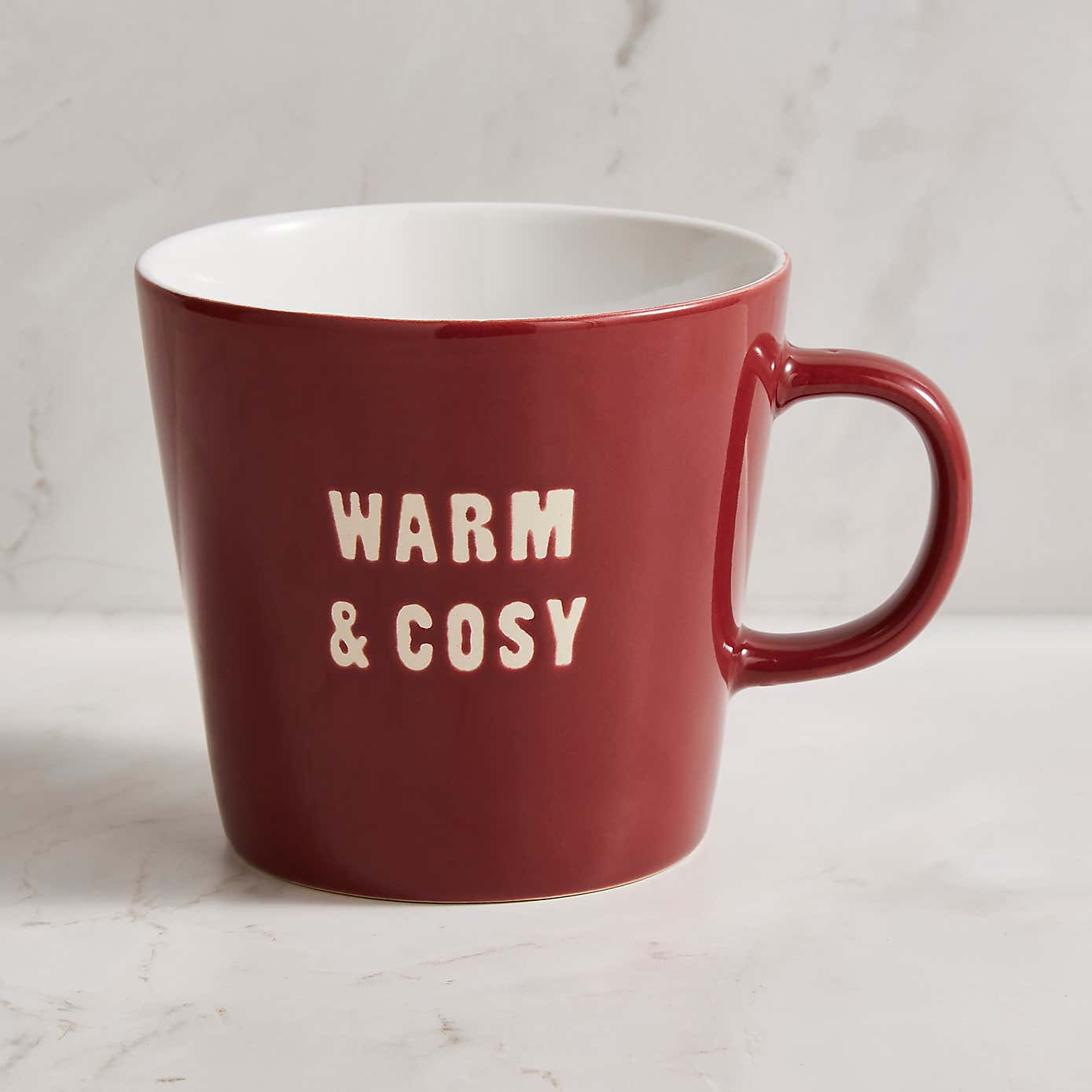 Ceramic Burgundy Warm & Cosy Slogan Mug