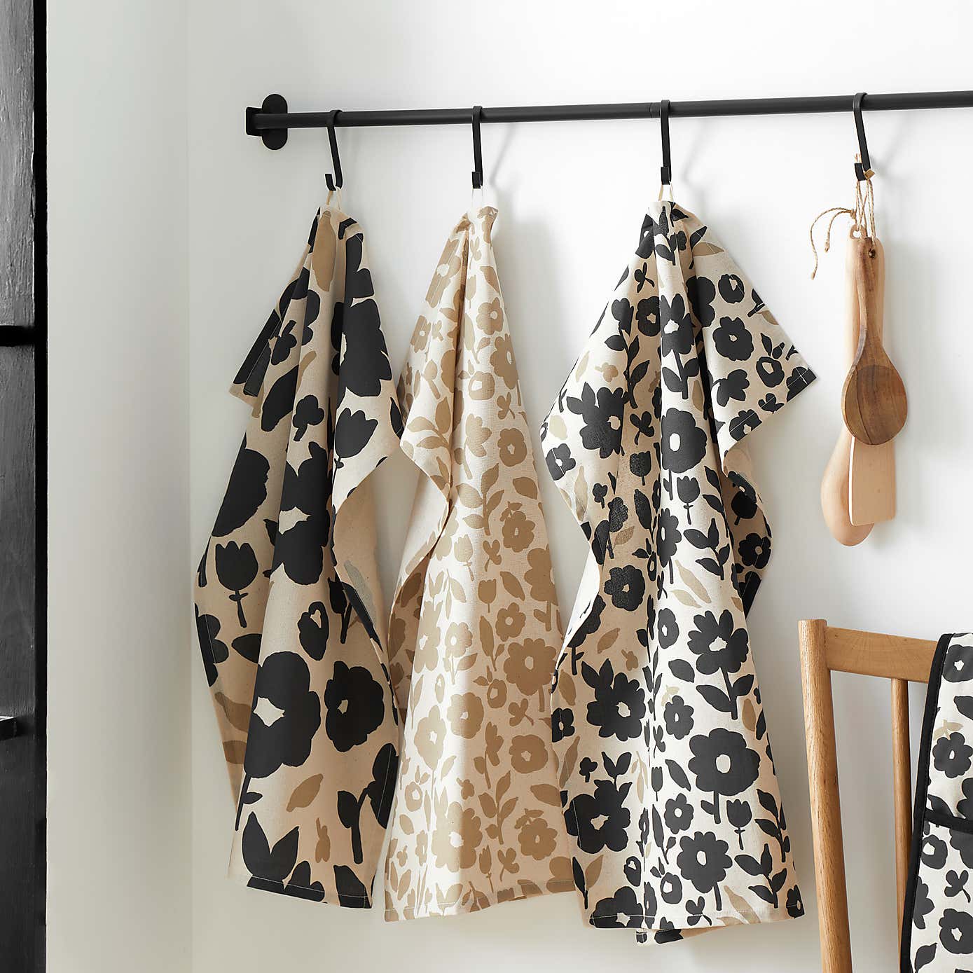 Set of 3 Floral Monochrome Cotton Tea Towels