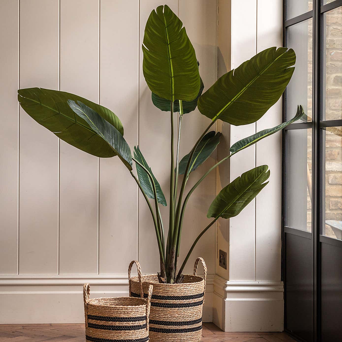 Artificial Small Travellers Palm Tree in Black Plant Pot
