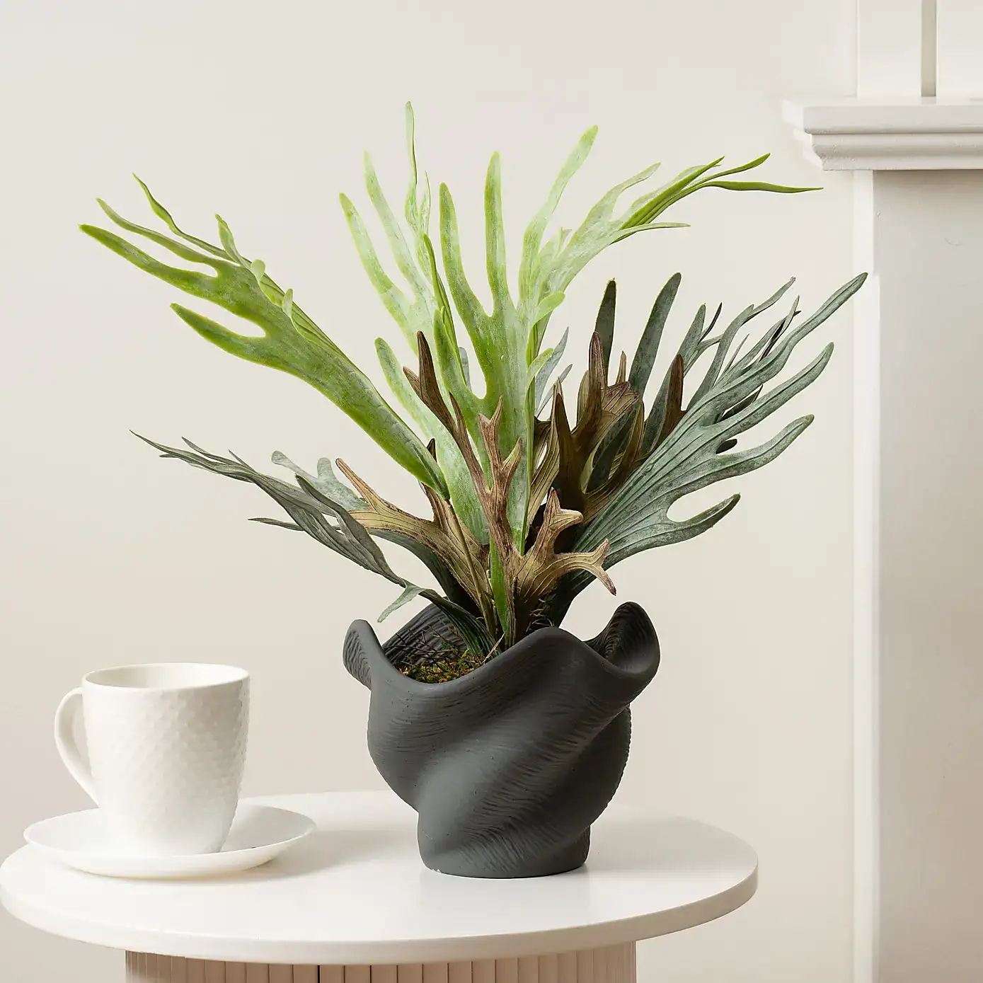 Artificial Small Calathea Leaf Tree in Black Plant Pot