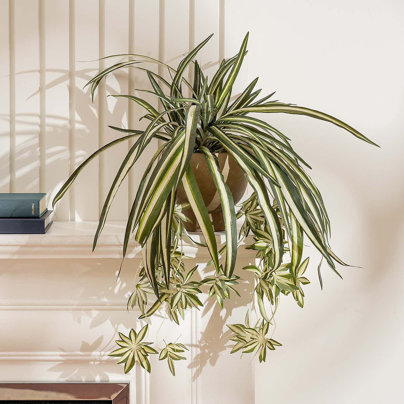 Artificial Spider Plant in Rustic Plant Pot