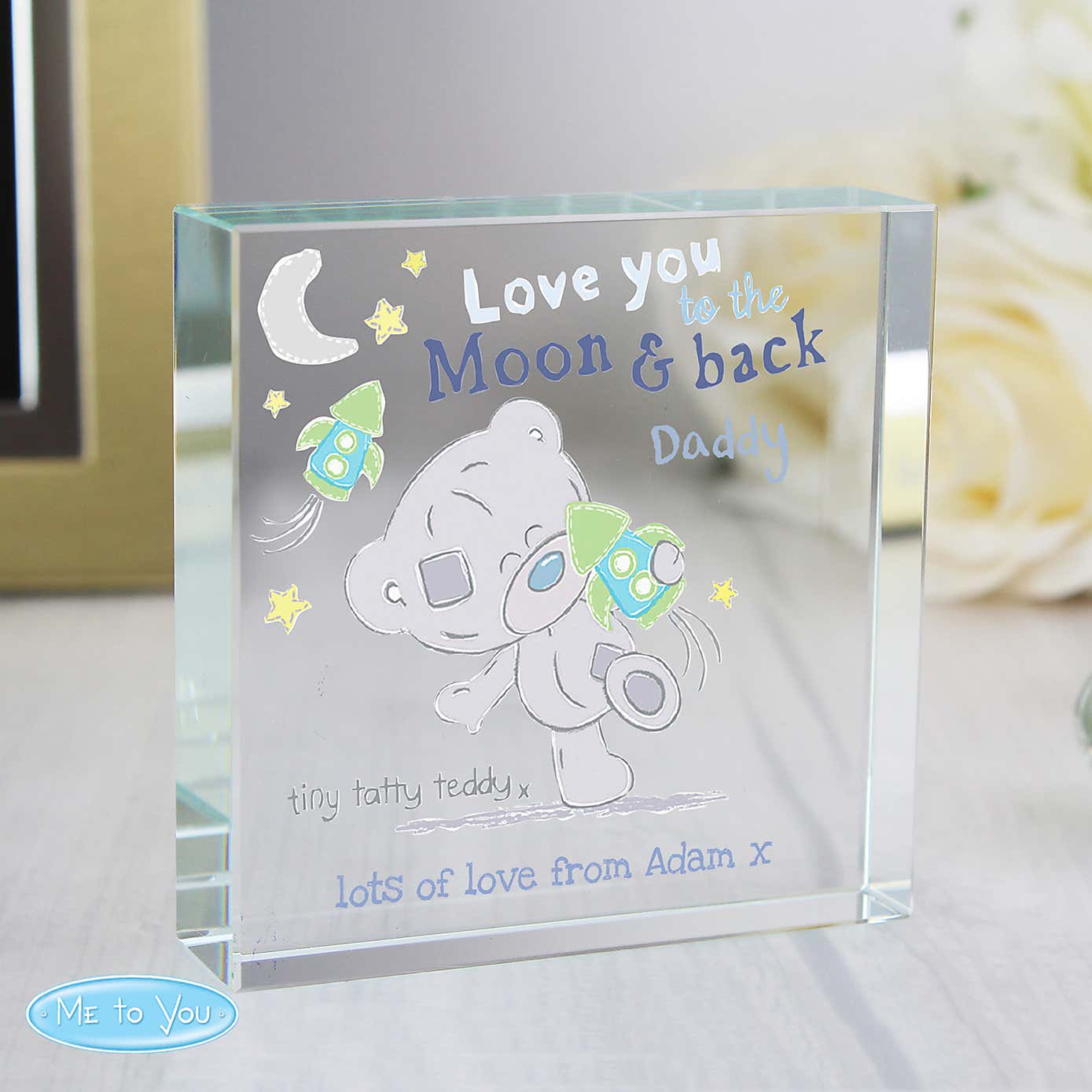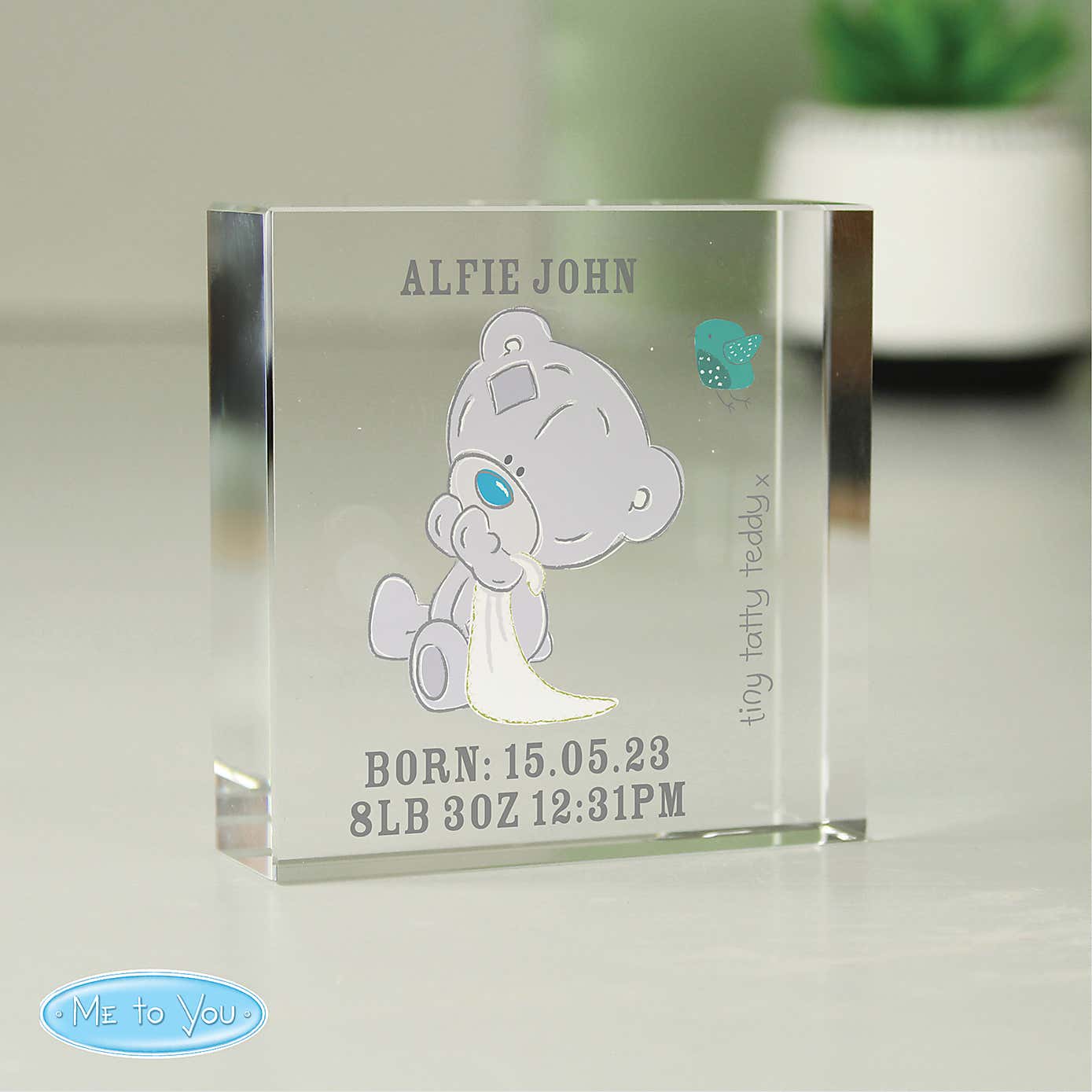 Personalised Tiny Tatty Teddy Christening Crystal Token