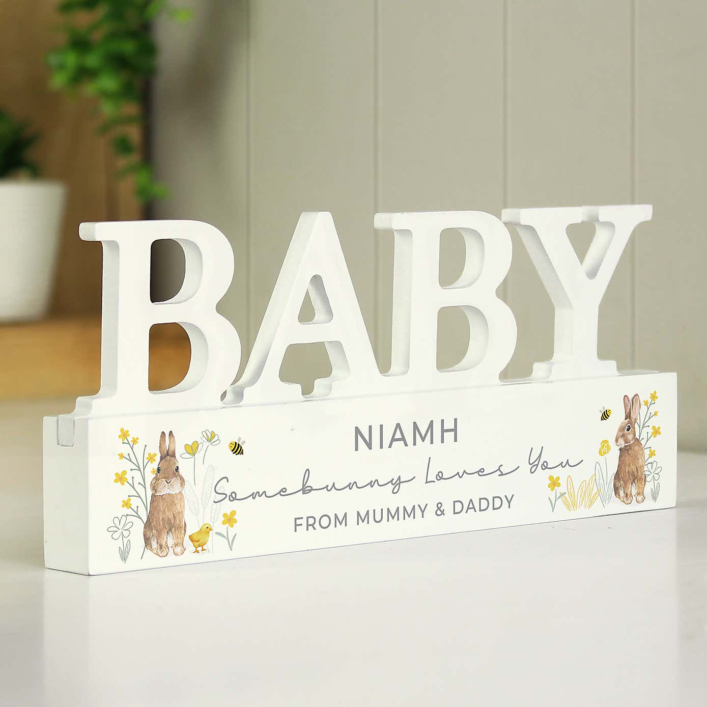 Personalised Spring Bunny Wooden Sign