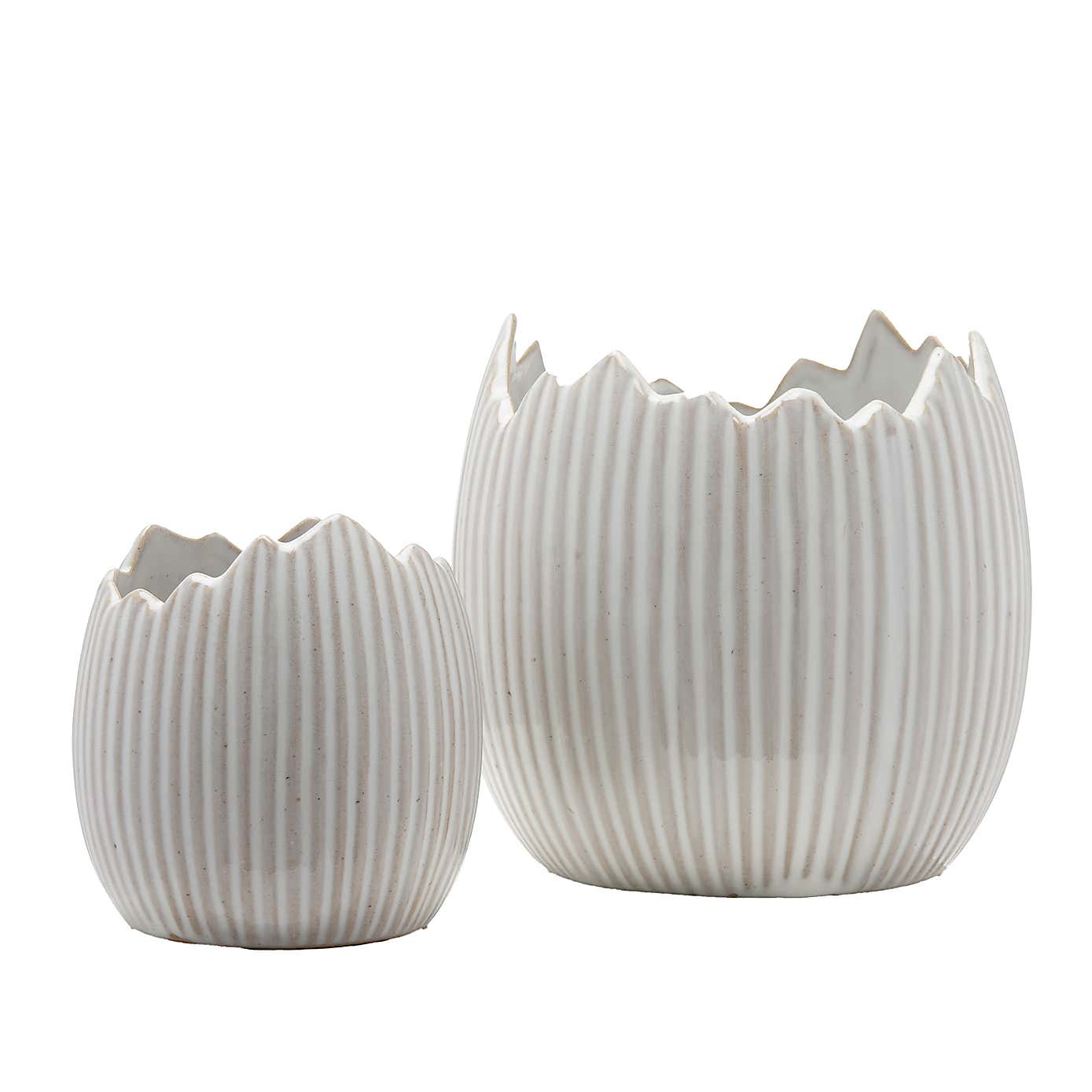 Cream Speckle Wide Ribbed Planter 14cm x 16cm