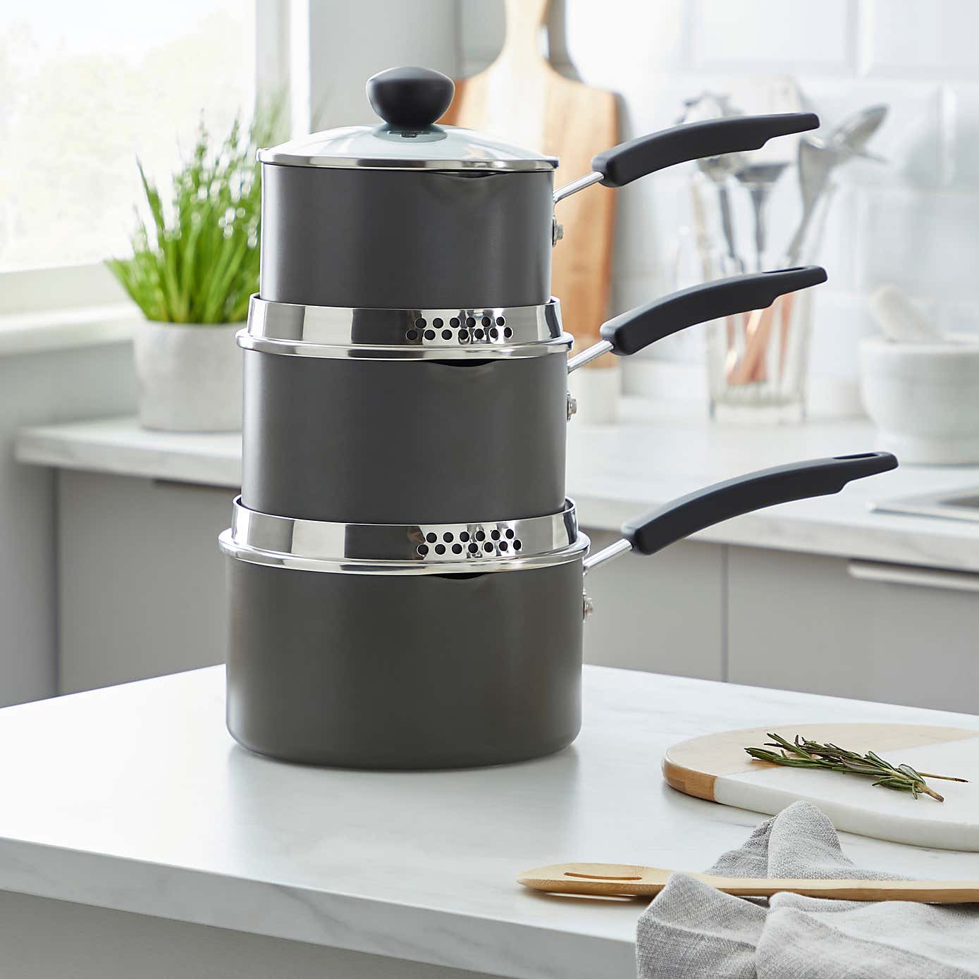 Non-Stick Hard Anodised Aluminium 3 Piece Pan Set