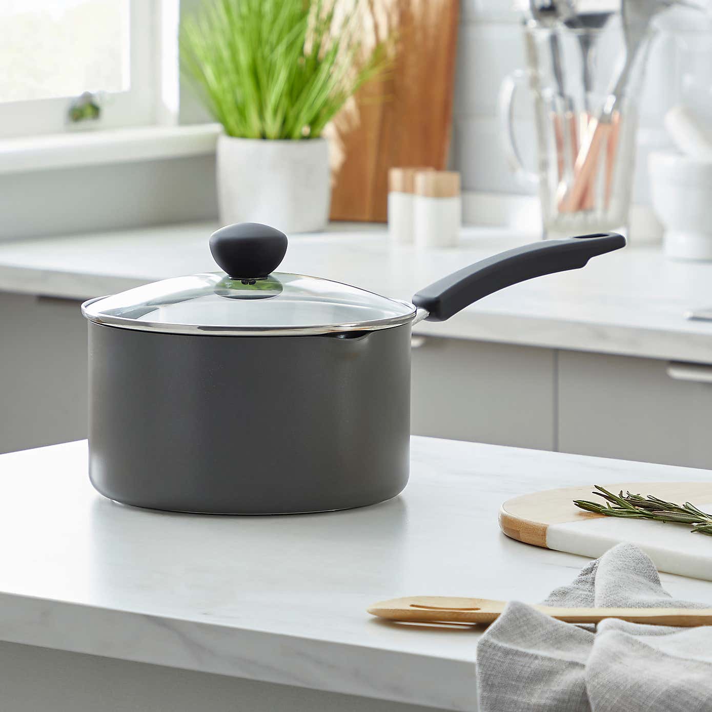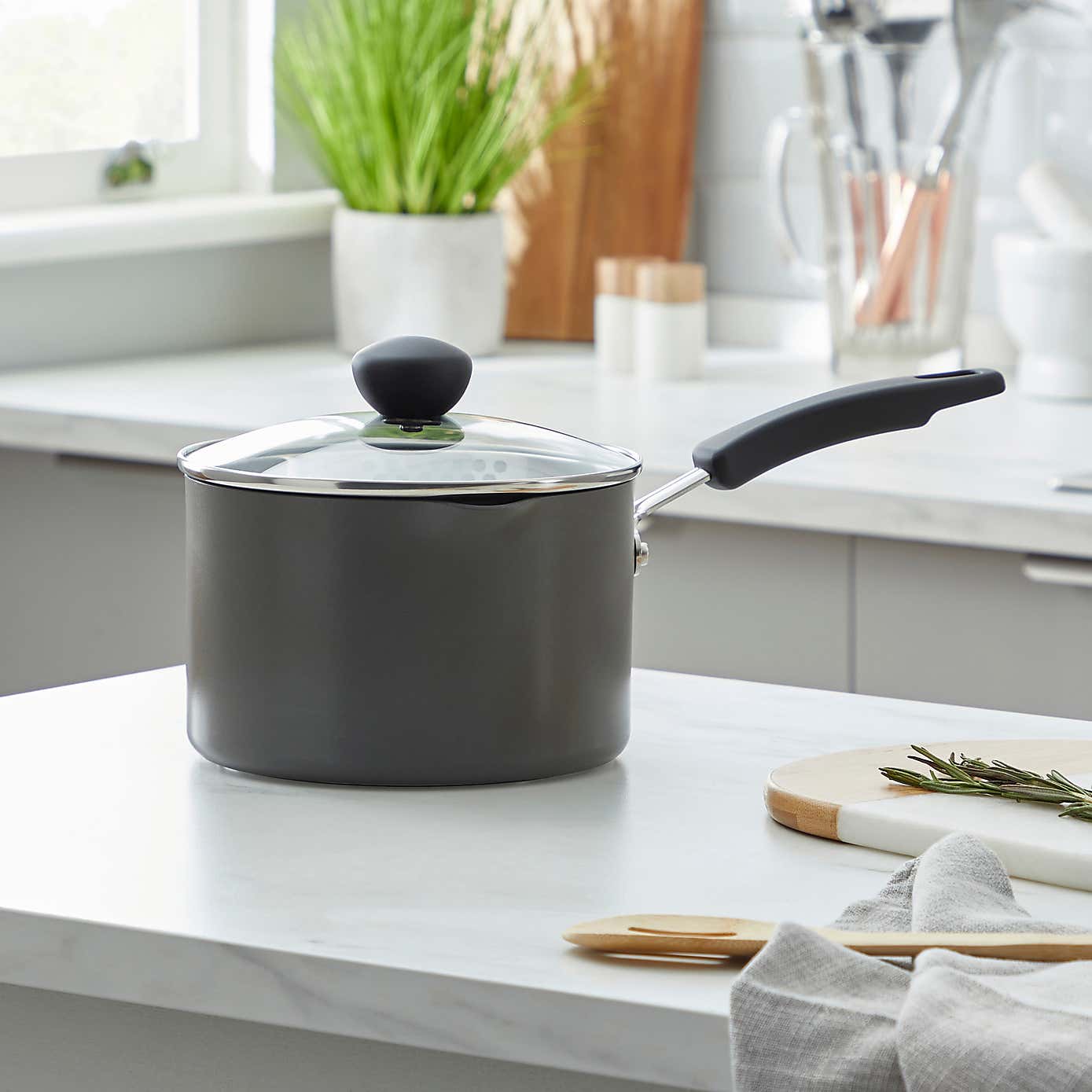 Non-Stick Hard Anodised Aluminium Saucepan, 18cm