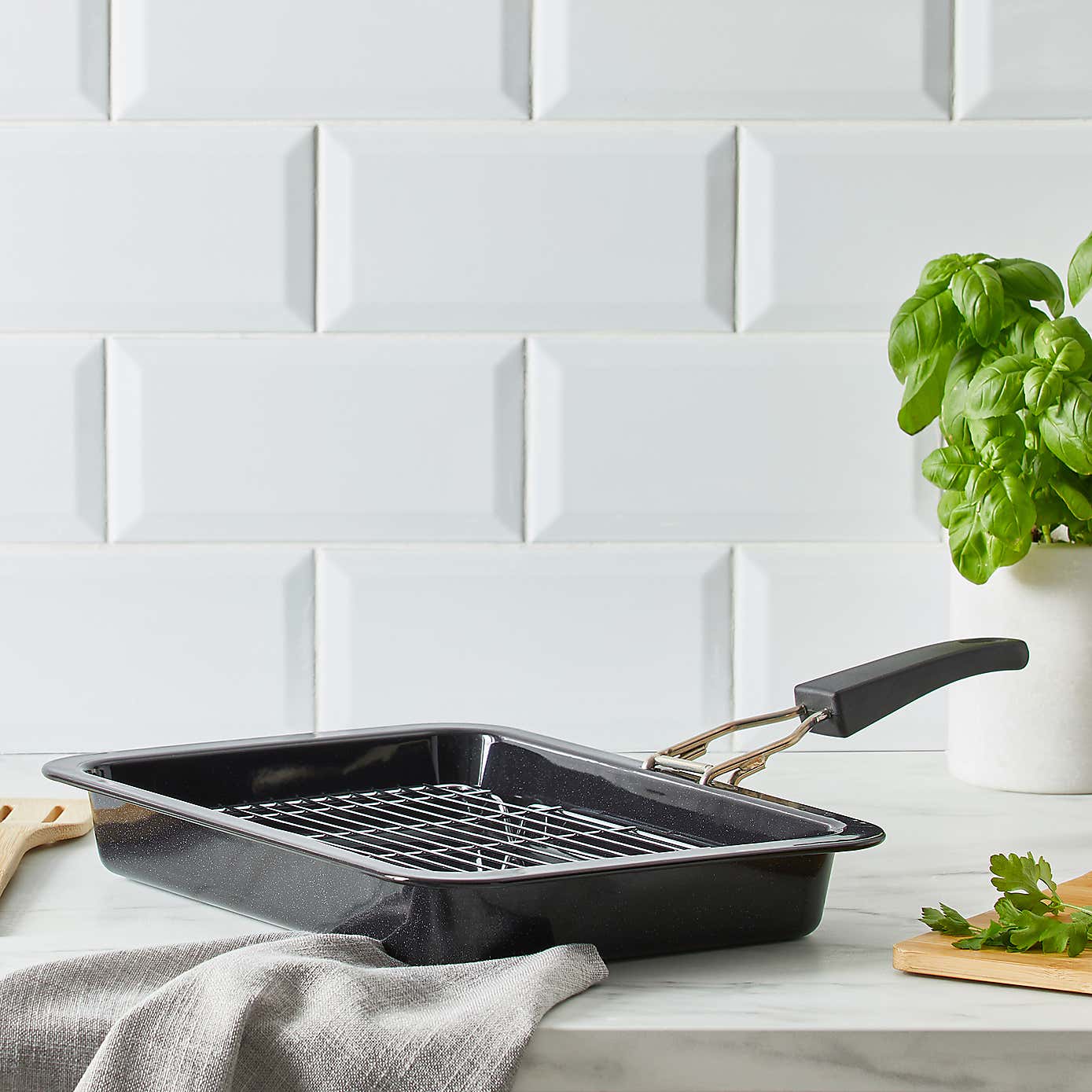 Non-Stick Steel Grill Pan with Detachable Handle