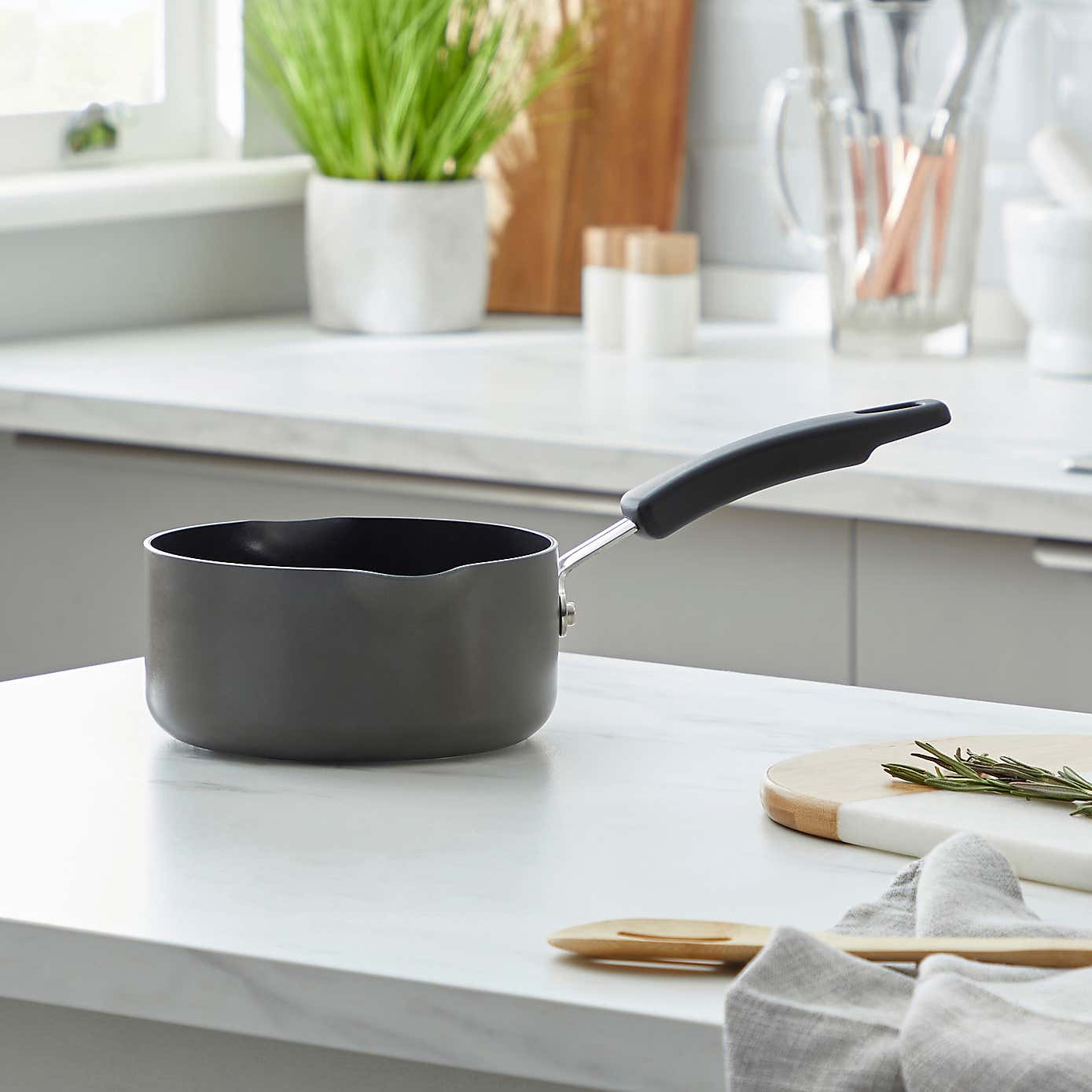 Non-Stick Hard Anodised Aluminium Milk Pan, 16cm
