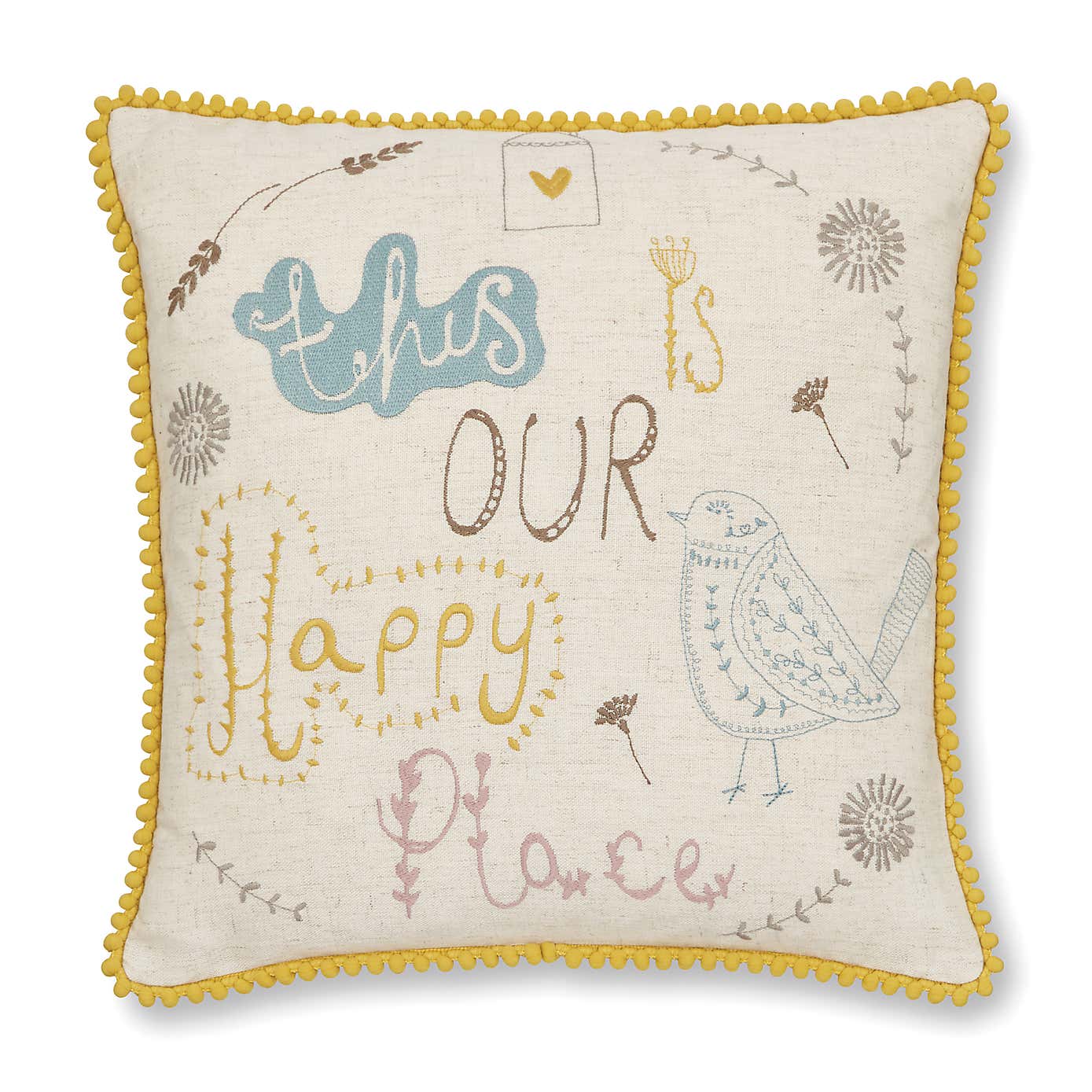 Scandi Happy Place Embroidered Ochre Cushion