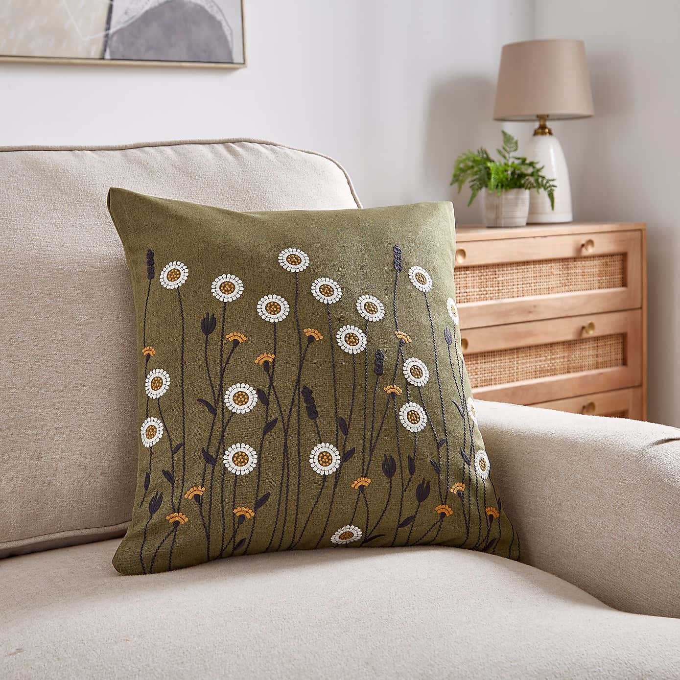 Scandi Floral Olive Cushion
