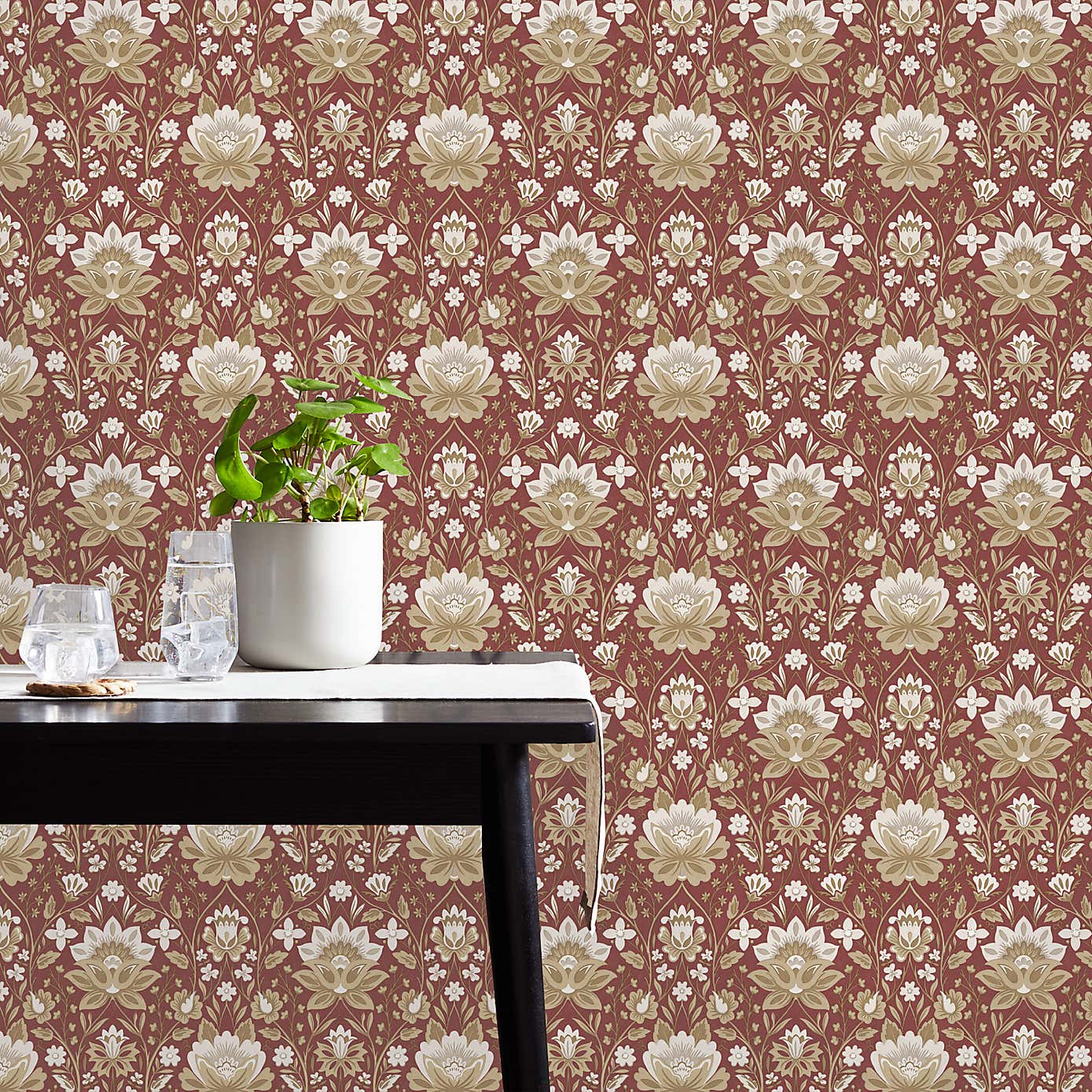 Mirrored Floral Russet Wallpaper